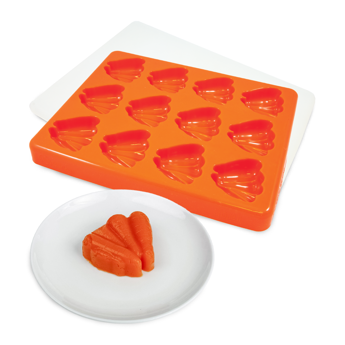 Each Carrot Mould holds 12x 50mL portions. Serve hot or cold as a side to texture-modified sausages, steak or fish.