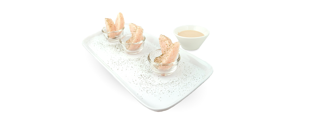 Tender prawns paired with a tangy, flavourful cocktail sauce, offering a refreshing, classic taste with a light and zesty touch.